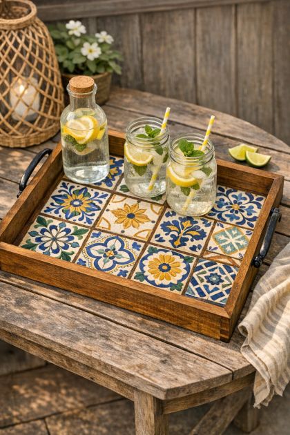 Framing vintage ceramic tiles inside a wooden shadow box is a creative way to repurpose beautiful tiles and transform them into a functional piece of art. This DIY project not only highlights the intricate designs of vintage tiles but also adds a personalized touch to your outdoor living space, making it perfect for entertaining on the deck. By creating a serving tray, you merge elegance with practicality, elevating your hosting game.