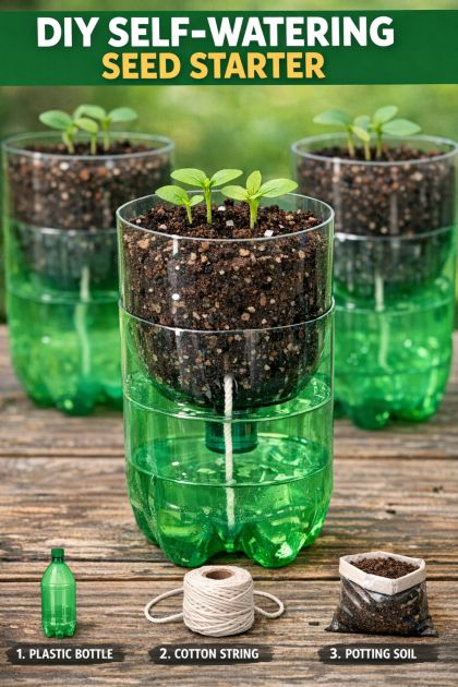 This DIY self-watering seed starter is a sustainable gardening solution that repurposes common household waste into a functional tool for gardeners. By utilizing empty green plastic soda bottles and two everyday household scraps, you create an efficient seed starting system that maintains consistent moisture levels, saving water and ensuring your seeds germinate successfully. This clever design is particularly useful in dry seasons or for gardeners who travel frequently, as it reduces the need for daily watering.