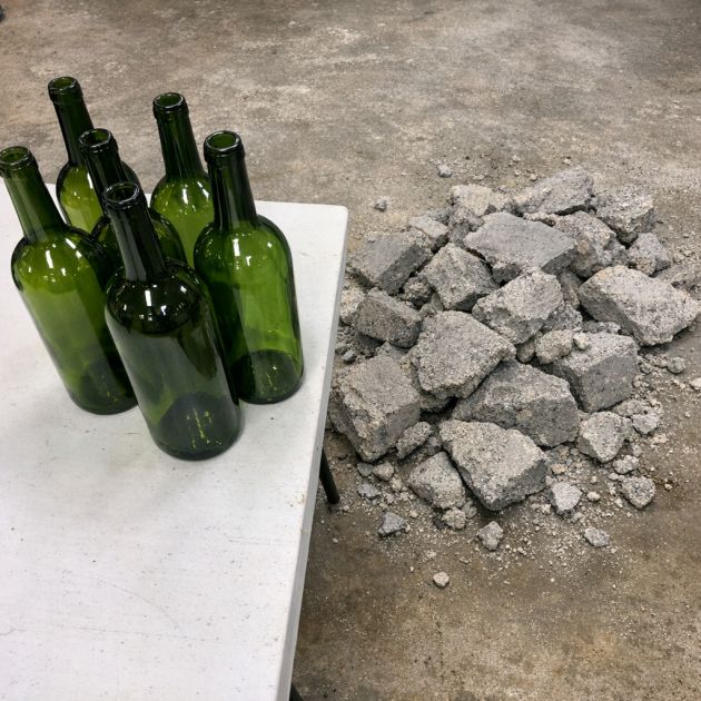 8. Once the concrete is fully cured, clean any excess or splattered concrete from the exposed bottle surfaces with a damp cloth.
