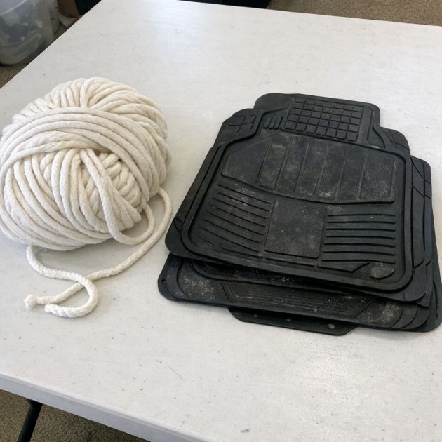 1. Prepare your rubber mats by cleaning them thoroughly. Cut each mat into strips measuring approximately 2 inches wide and 12 inches long.
