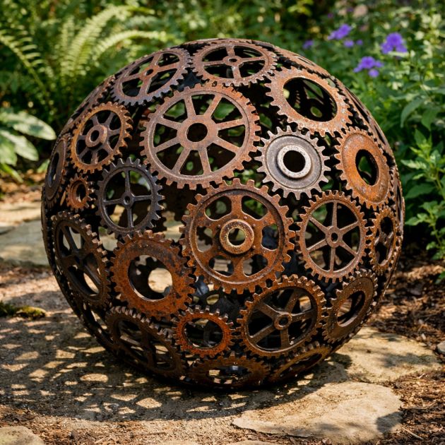 Vintage Gear Sphere Garden Sculpture