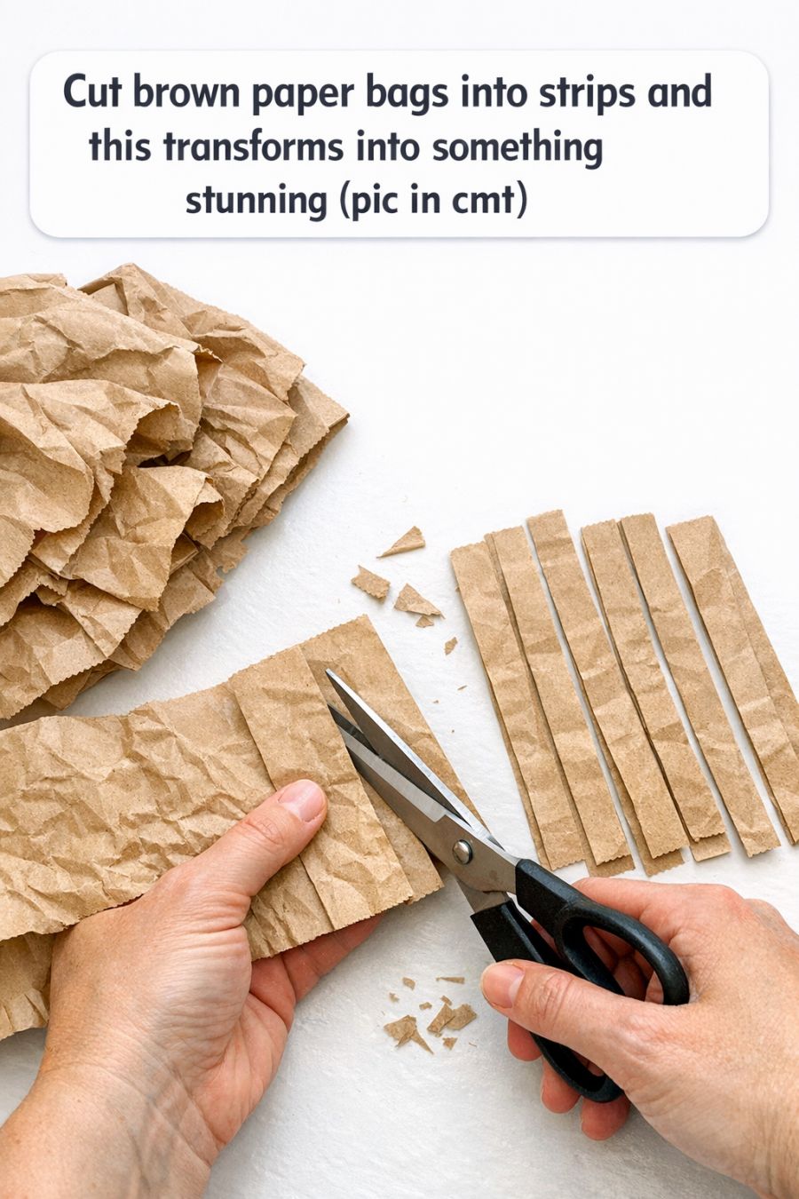 Cut brown paper bags into strips and this transforms into something stunning