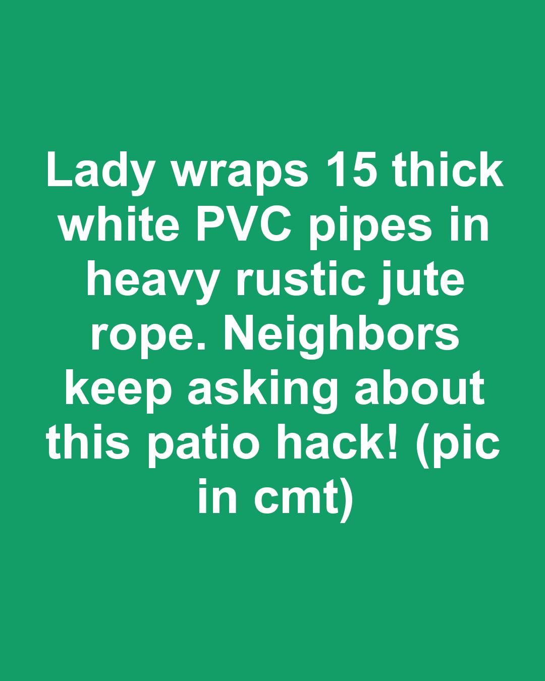 Lady wraps 15 thick white PVC pipes in heavy rustic jute rope. Neighbors keep asking about this patio hack!
