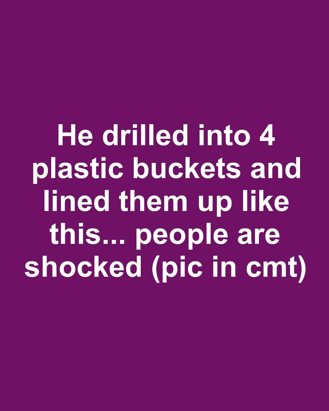 He drilled into 4 plastic buckets and lined them up like this... people are shocked